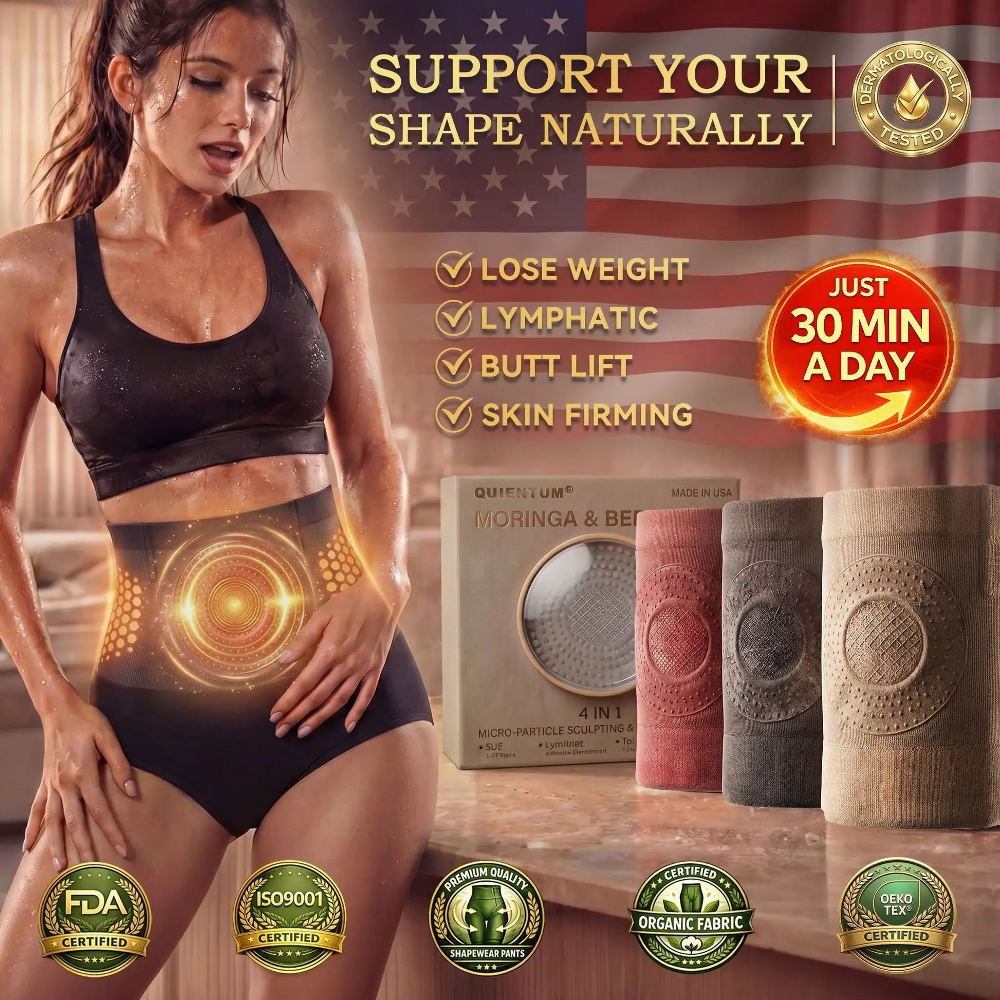 By infusingย Moringaย essence into the fabric and utilizing a unique process to embed high-purityย Berberine, these functional shorts can release natural alkaloid molecules. The combination ofย Moringa Therapyย andย Berberine Metabolic Therapyย offers variousย health benefits, including accelerating fat oxidation by activating the AMPK energy switch, balancing blood sugar levels, and reducing systemic inflammation, thereby precisely improving abdominal circulation and optimizing metabolic health from the foundational level.